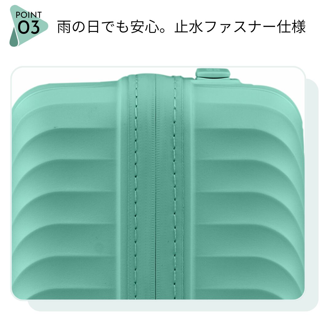 軽量ながらも耐久性を確保し、雨の日でも安心の止水ファスナー仕様で快適な旅をサポートします。